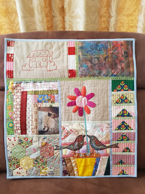 아플리케한 꽃과 화분에 앉아 있는 새들!